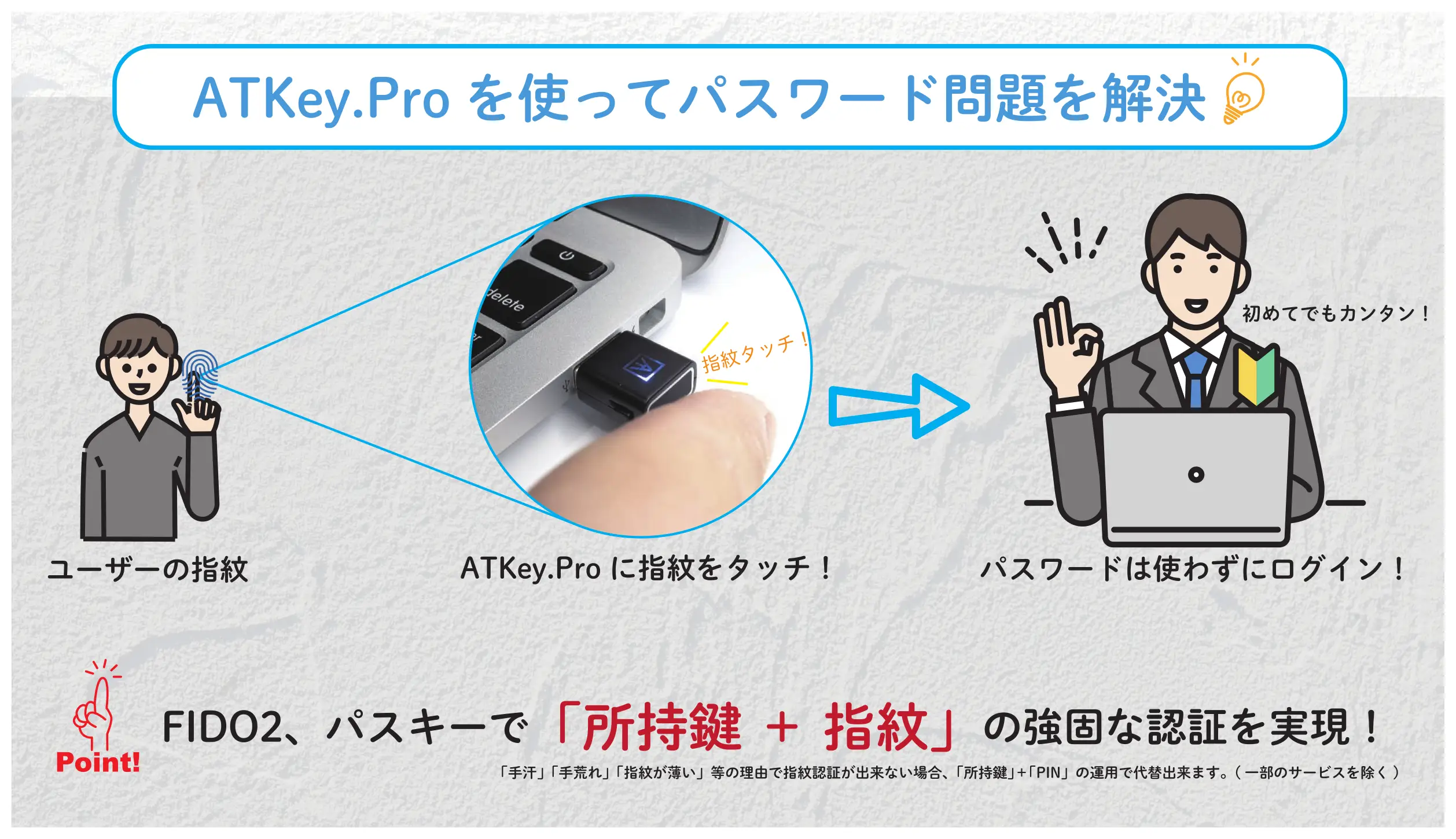 塩川氏によれば、「ATKeyは他社製品と比べても認証速度が際立っており、実際の現場では“かざした瞬間に反応する”“ログインが待たされない”といった声が多く寄せられています」とのこと。指紋認証スピードへの評価は、日常の使用感から生まれる実感に裏打ちされています。