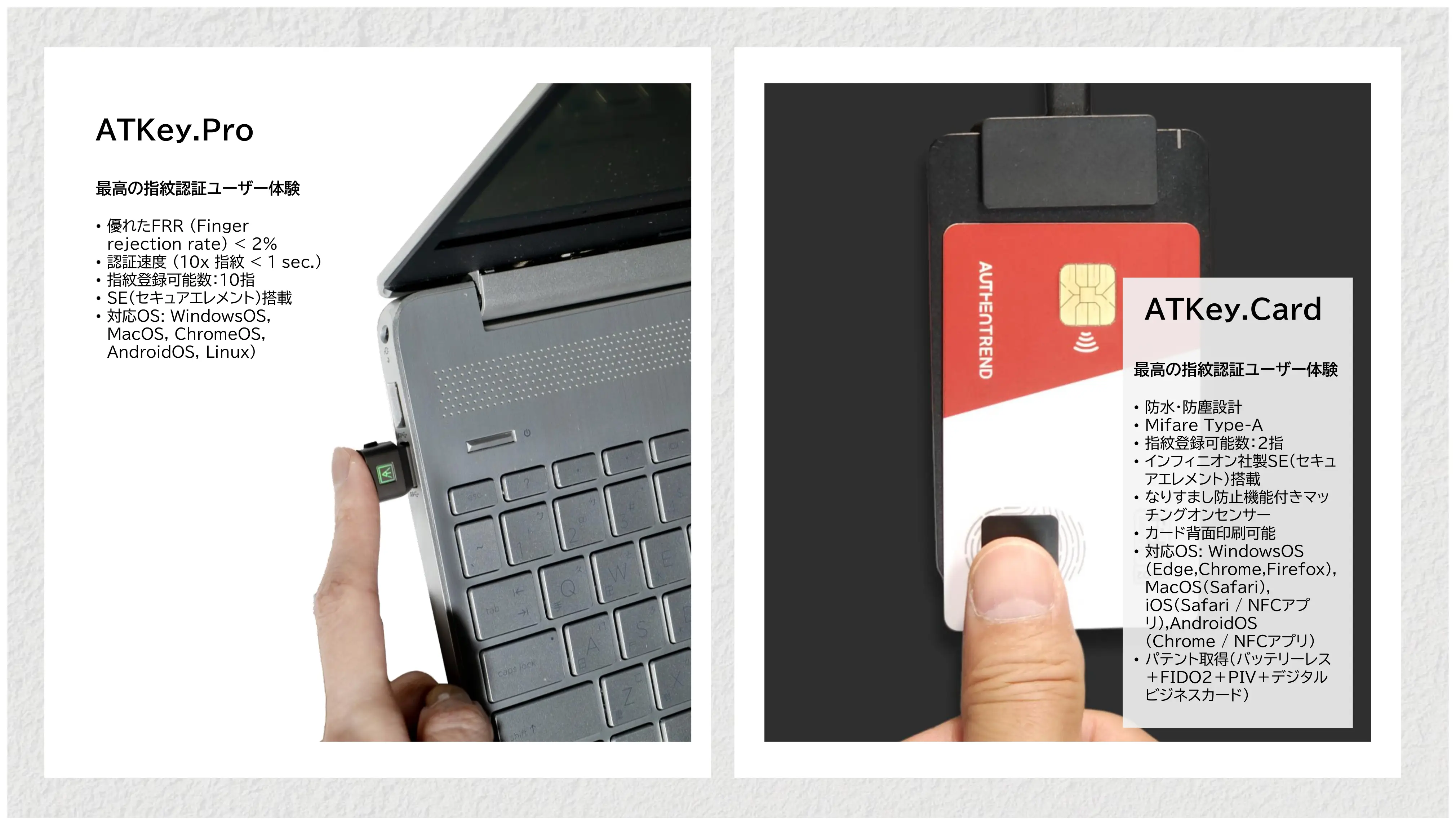 一方、カード型でNFCに対応したATKey.CardNFCもラインナップしており、運用環境やユーザーの好みに応じた選択が可能です。