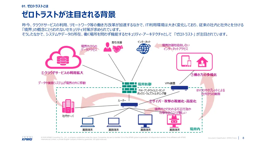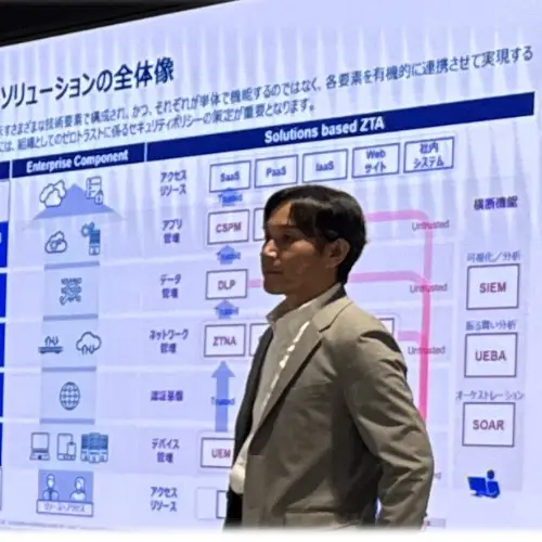 今回のテーマは「グループ会社全体で実現するゼロトラスト ~投資対効果のあるセキュリティ~」。来年度の施策検討が進み始める時期でもあり、グループ全体の統制やサプライチェーンを含めた対策について、実務レベルの視点を確認したいという参加者が多かったように見受けられます。