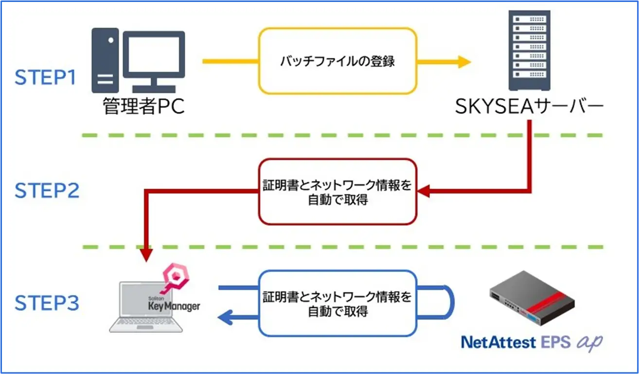 ゼロタッチ証明書配布では複数の端末に自動で証明書配布が可能になります。